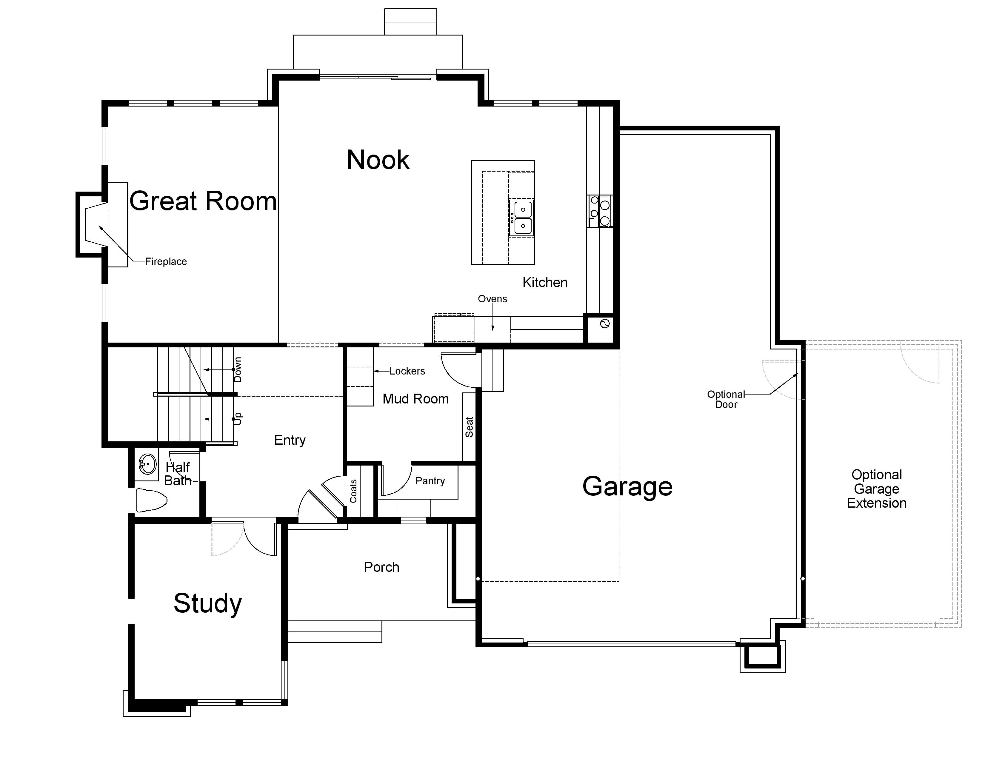 Don’t wait to build this new modern home plan! The Mayflower Modern offers a clean look and plenty of space with three bedrooms and two and a half bathrooms. You’ll love your brand new kitchen, nook, study, great room and master bedroom. Don’t forget the garage extension feature